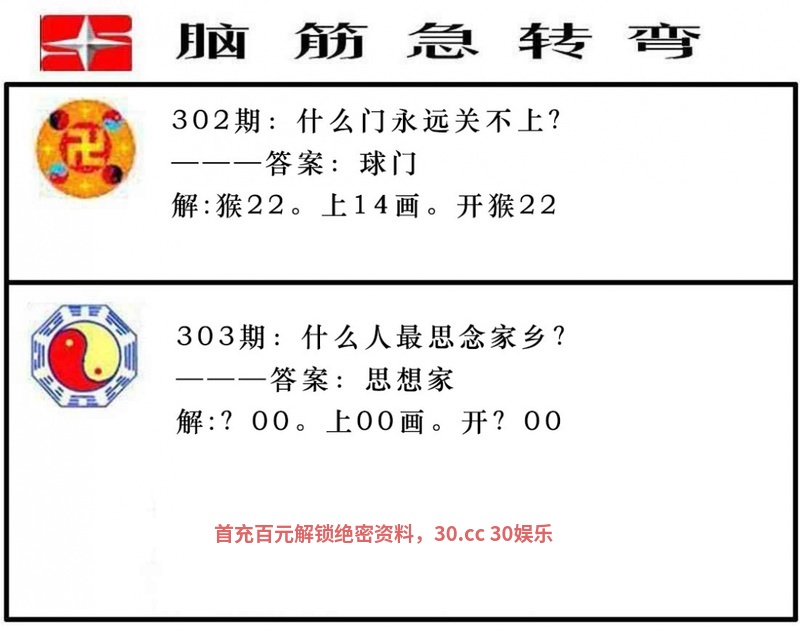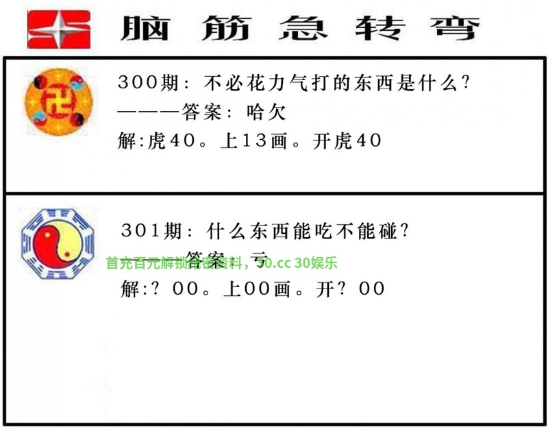 304期:猜字谜/有一说一诗/包不同送特/黄大仙欲钱料/最老版开门